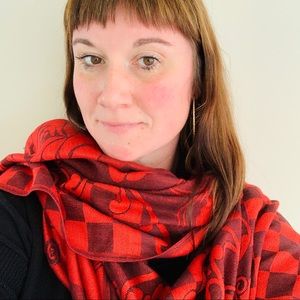 Bright red and dark red 100% pashmina. Reversible. Non smoker's home. Brand new, never worn.