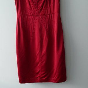 Beautiful red sheath dress from Banana Republic. Flattering boatneck front with a deeper V in the back. Elegant starburst seaming on the front.