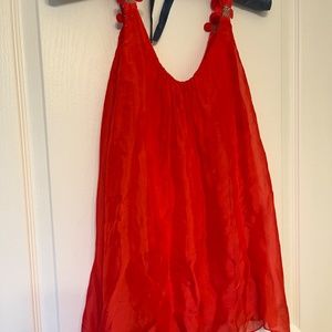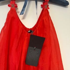 Red silk cami with flower ribbon straps, fully lined, made in Italy, brand new with tags.
