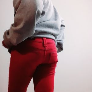 Red skinny jeans