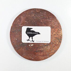 The material of the disc is possibly fossiliferous limestone or marble. It is in good shape (there is a little natural discoloured spot to the edge as pictured - not a chip)