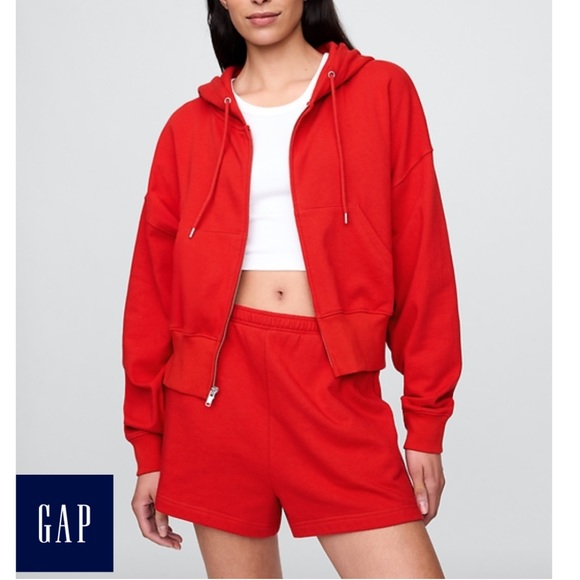 Soft cotton-blend French Terry sweat shorts and zip up hoodie