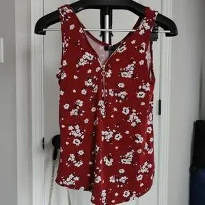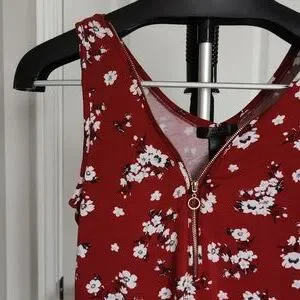 Stunning Red Tanktop with White Floral Detailing. Plus with the Gold Zipper Adjustable to your preference.