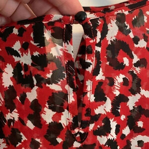 Red with black and white animal print! Light and flowy. Peek a boo V neck and hole in back W button. 3/4 sleeves with rouched sleeve cuffs. So pretty! Immaculate. Size 1X