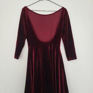 It's a deep red colour, with a cinched waist. Very low cut back, fits US size small, no tags. Acquired from a vintage thrift store.