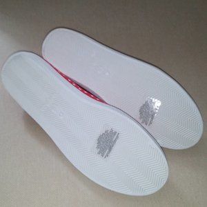 Red with white hearts canvas slip ons. Size 9 NWOT