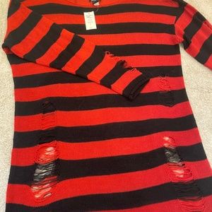 BNWT, Super cute Red and Black stripped dress. Has cute distressed patches on sleeves and body