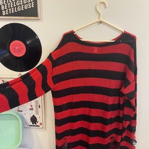 Red/Black Distressed Sweater Dress