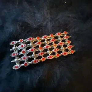 This bracelet is low key but stands out. It’s a great way to add a little colour to a dark outfit. It’s got a stretch base so fits all sizes. It’s missing one stone, as pictured, but you do not notice that when it’s on. I promise.
