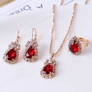 ❤️ Red Ruby Gold Plated Crystal Rhinestones Jewelry Set