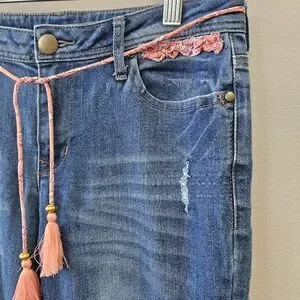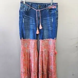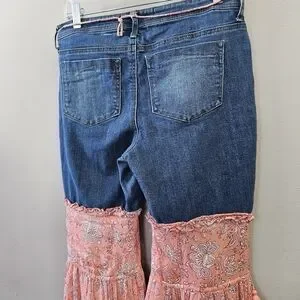 Redesigned one-of-a-kind Jeans with pink floral added embellishments