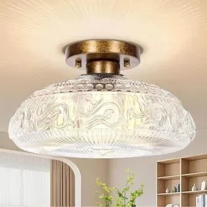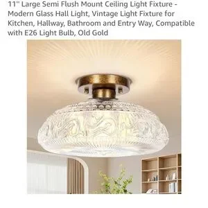 11'' Large Semi Flush Mount Ceiling Light Fixture - Modern Glass Hall Light, Vintage Light Fixture for Kitchen, Hallway, Bathroom and Entry Way, Compatible with E26 Light Bulb.