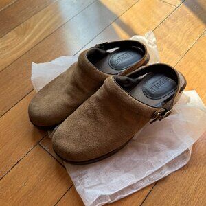 SO CUTE! These are in amazing condition. Suede clogs wooden base, you can move the strap to go behind the heel or wear it up. Size 39.