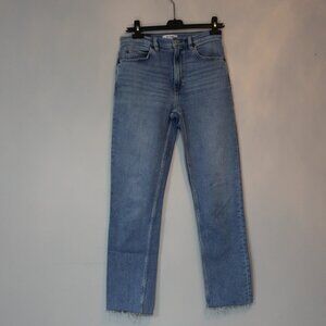 Fit Intent High rise fit sitting right below the natural waist and hitting at the ankle bone. fitted through thigh with a straight leg down to your ankle.96% Cotton; 3% Polyester;1% Elastane; made in Turkey