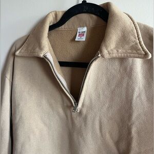 Re/done Hanes Cotton Tan Half-Zip Sweater in Faded Khaki XS