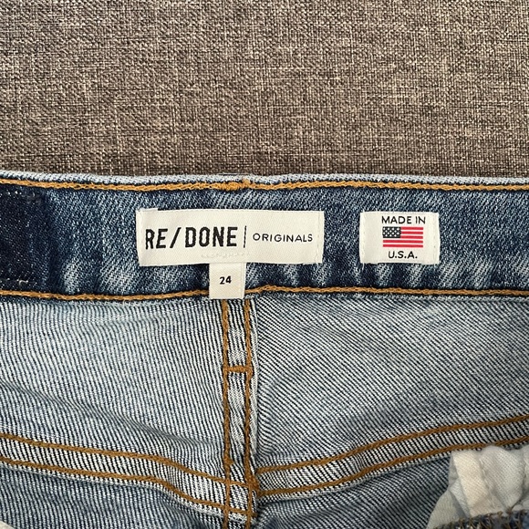 Redone original high rise ankle crop jeans in good conditions. Slight scuffing near the crotch area but other wise no major imperfections! Model photo shows fit only!