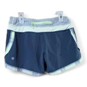 Reduced price Lululemon Wet Dry Warm Green Neon Plaid Trim Speed Shorts Size 4