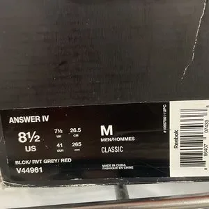 Reebok Answer IV Iverson Size 8.5 men Black red grey Great condition og box