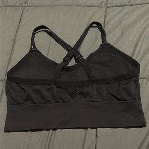 The Reebok Black Sports Bra offers a sleek and supportive fit, featuring a classic racerback design with crisscross straps for added style. Made from a stretchy athletic material, it provides comfort and flexibility during workouts. The molded cups ensure optimal support, while the iconic Reebok logo adds a touch of brand authenticity.