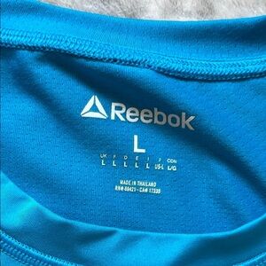 Lightweight and breathable Reebok men’s activewear t-shirt in a vibrant blue color. Size Large. Features moisture-wicking fabric and athletic fit, perfect for workouts, running, sports, or casual wear. Good used condition with no noticeable flaws. The logo is the only thing that is peeling off on the bottom corner of the shirt.