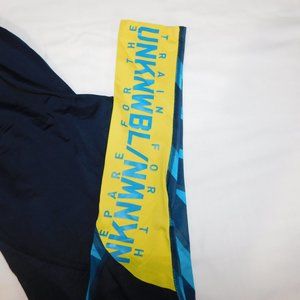 This pair of Womens Medium Reebok Crossfit Blue Yellow TRAIN / PREPARE FOR THE UNKNOWABLE Speedwick Control Compression Tights / Leggings are in great clean condition.. Tights are a polyester spandex blend. Machine wash cold - line dry.