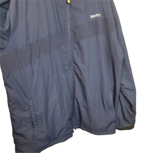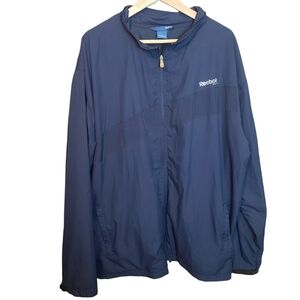 Reebok Hockey, Men's blue, Zip-up, long-sleeved, lightweight Jacket. Mesh lining, two front zippered pockets, adjustable cuffs, fold down collar. Comfortable, lightweight but warm, in great shape size XXL