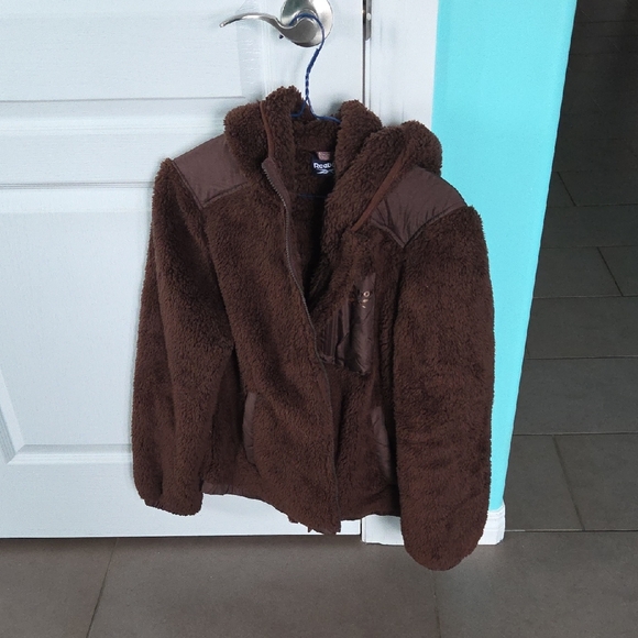 size L reebok jacket never worn only tried on lovely brown color and warm Smoke free home pet friendly home