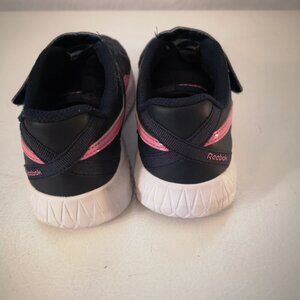Reebok Kids Size 2 Navy & Pink Velcro Closure with Elastic Laces Sneakers