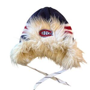 Reebok Montreal Canadiens Hat Toque Fur Trooper Hat Logo Face Off Skate Laces