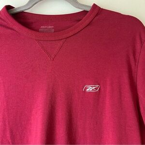 Reebok, PlayDry, vintage sportswear, athletic tee, workout shirt, maroon red shirt, gym top, casual men’s t-shirt, polyester cotton blend, classic logo tee, 90s Y2K vibe, streetwear basics, retro activewear, retro