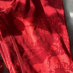 Bold red Reebok leggings and sports bra. Includes boxing gloves. Ideal for fitness enthusiasts.