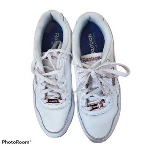 Reebok Rose Gold details white Sneakers Lux Footbed Size 6 1/2 235mm Good used condition, some sign of wear, small scratches