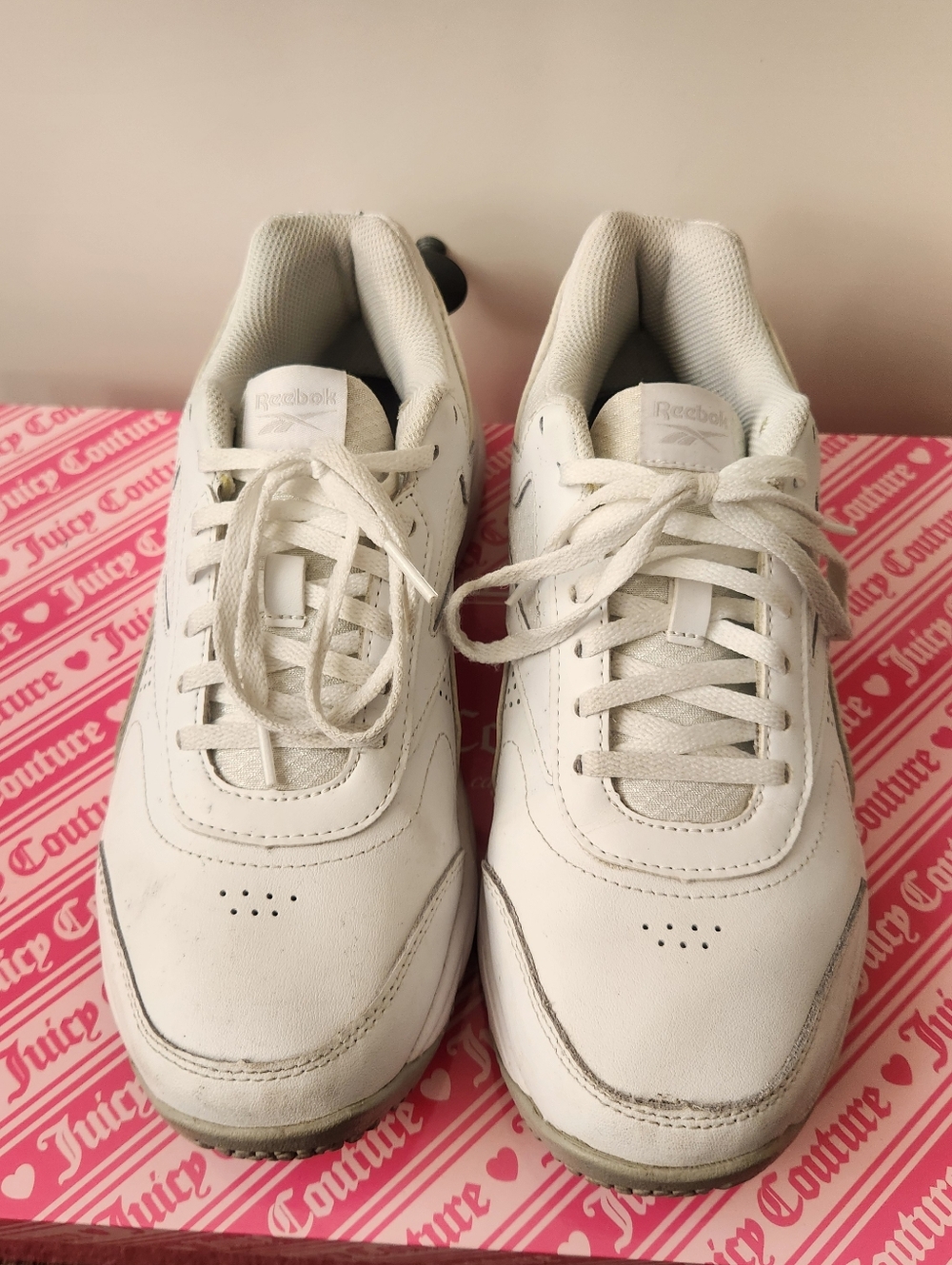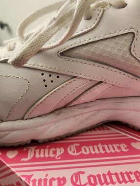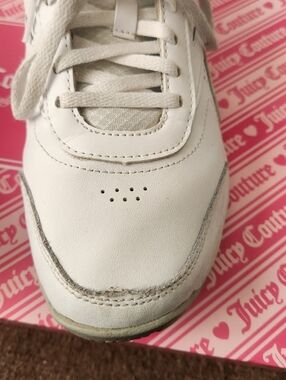 White Reebok Runners Moderately worn so fair condition with a few persistent stains Size: 9.5 Women's Open to offers! Check out my other listings!
