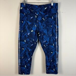 Reebok Women Royal Blue White and Black 3/4 Leggings for Training Gym Stretchy