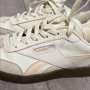 New Classic Reebok sneakers in cream and nude. Ideal for everyday style with jeans or trousers.