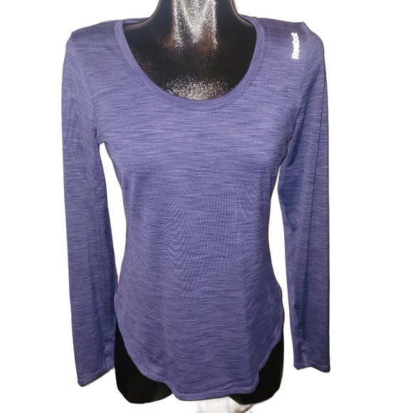 Stay comfortable and stylish with this Reebok women's long sleeve top. Featuring a rich light purple color, it's perfect for any casual outing or workout session. Has thumb holes.