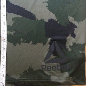 Reebok Green Camo Workout shirt. 94% polyester and 6% Spandex
