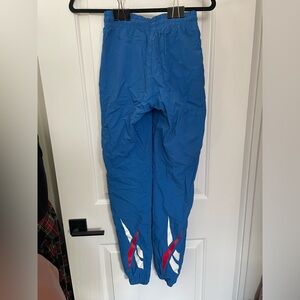 Reebok lightweight joggers. Double layered. Zippers at ankles. Classic Reebok colours and design. Drawstring and elastic waistband. Rarely worn. Size 2 XTRA SMALL