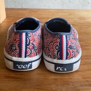 Super comfy (Reef is known for making comfortable footwear) slip on shoes. Perfect for vacation, beach days, or even every day wear. Previously and gently worn by me . All cleaned up and ready for the next owner to enjoy. These are a size 8 womens and fit true to size. Feel free to message if you have questions.