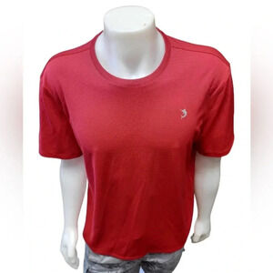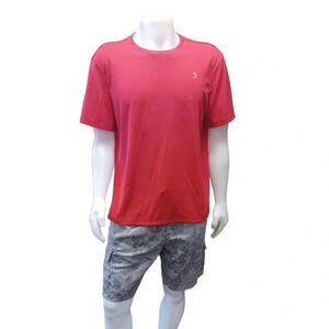 Red in color, this short sleeve features a round neck and has plenty of stretch available.