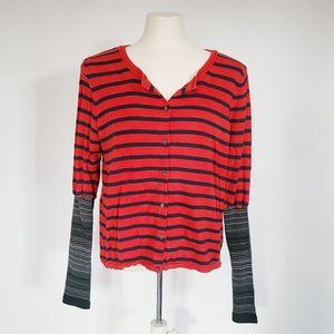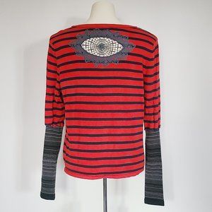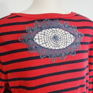 I created this fantastic top from preloved & vintage materials. The top features a button up back/front + cut out lace details & lightly puffed contrasting sleeves.