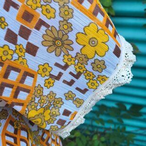 Refashioned Vintage Top (M/L) brown and orange 70's fashion pattern