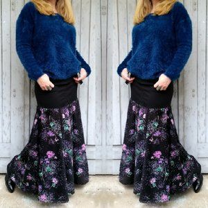 Refashioned Vtg Floral & Denim Maxiskirt (M/L)