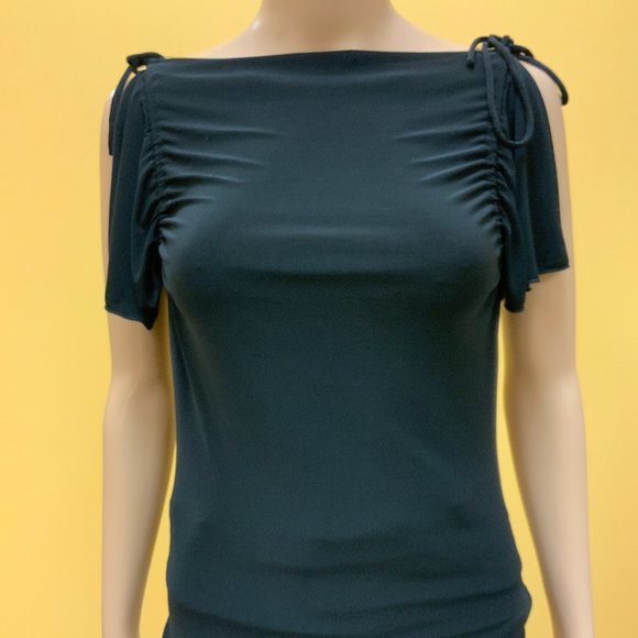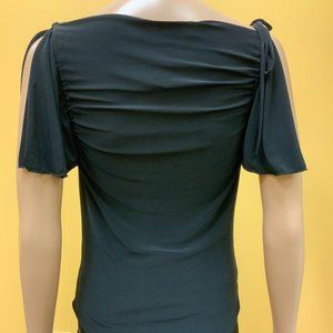 Black Short Sleeve Shirt.  Shoulder Ties, Open Sleeve Size Large 90% Polyester, 10% Spandex