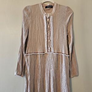 Refka Modest Pleated Long Sleeve Maxi Cream Dress Size US 12.