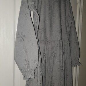 Anglaise broderie fully embroidered dress in a grayish blue slate color. It is fully lined. Selling because it's a little too snug.