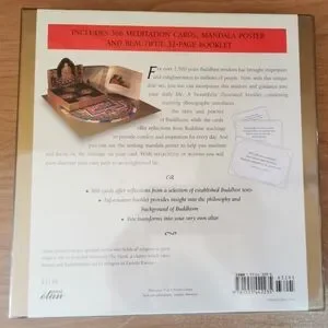 The words of the Buddha have provided inspiration for those on a spiritual path for over 2,500 years and resonate as strongly today as they did when first spoken. Now the greatest Buddhist teachings are assembled on individual cards so that seekers of spiritual enlightenment can draw on them to begin each day, week, or month. This beautifully boxed set contains 366 meditation cards, mandala poster and beautiful 32 page booklet. Those seeking enlightenment can use the kit in their own, completely personalized way, by creating an "altar" with the box and poster or by simply meditating on each card's meaning. This unique combination of cards, altar, poster, and booklet will offer inspiration and guidance for those seeking a more enlightened life.