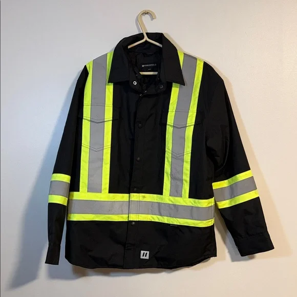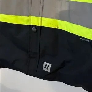 Stay visible and safe with this reflective black and yellow performance jacket. Perfect for outdoor activities, it combines style with functionality. In amazing preloved condition