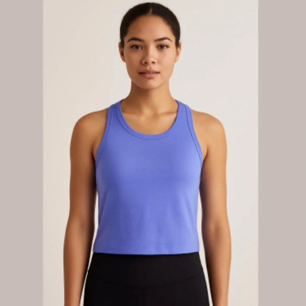 Style tags: Ribbed racerback tank sleeveless fitted stretch knit athleisure casual everyday layering breathable soft lightweight gym yoga lounge minimalist modern versatile Reflex brand scoop neck body skimming comfort staple neutral basic wardrobe essential