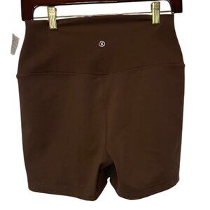 Women's high-rise biker shorts from the brand Reflex in brown color. The shorts feature a high, wide waistband designed for tummy control and a secure fit and a biker short length. The style is suitable for various athletic activities, from yoga to running, and also for casual athleisure wear.